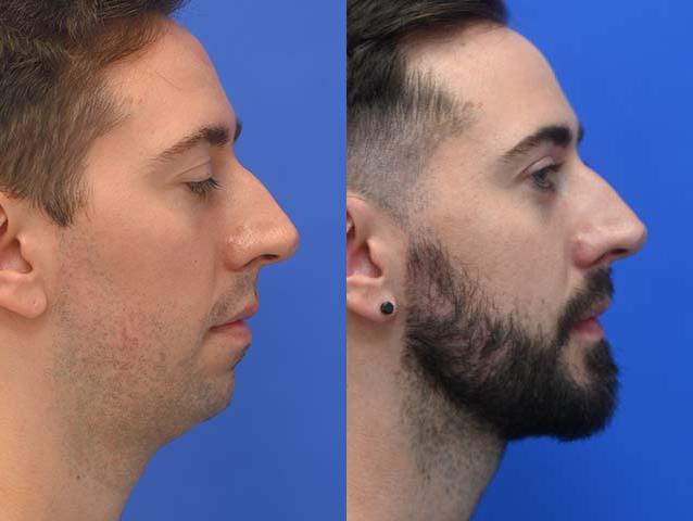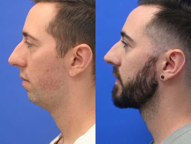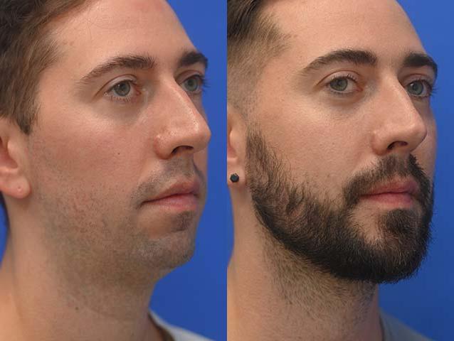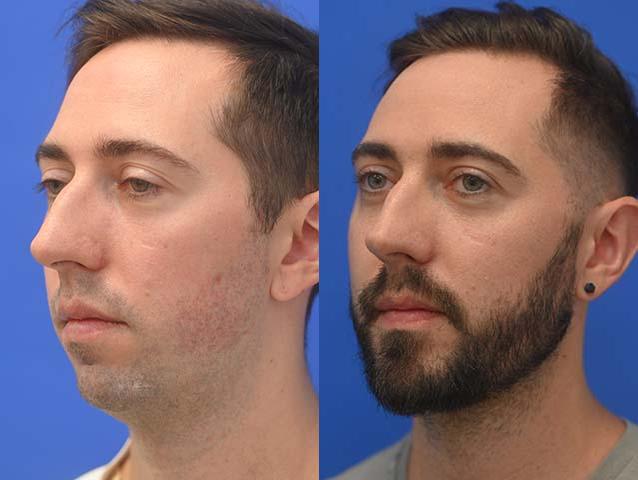 This male patient had a Chin Augmentation, Mandibular angle augmentation, liposuction of the submental area performed by Dr. Sayah.